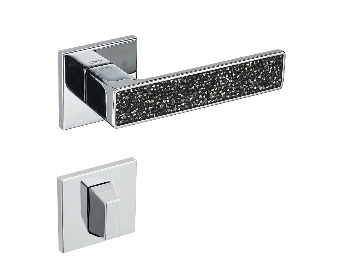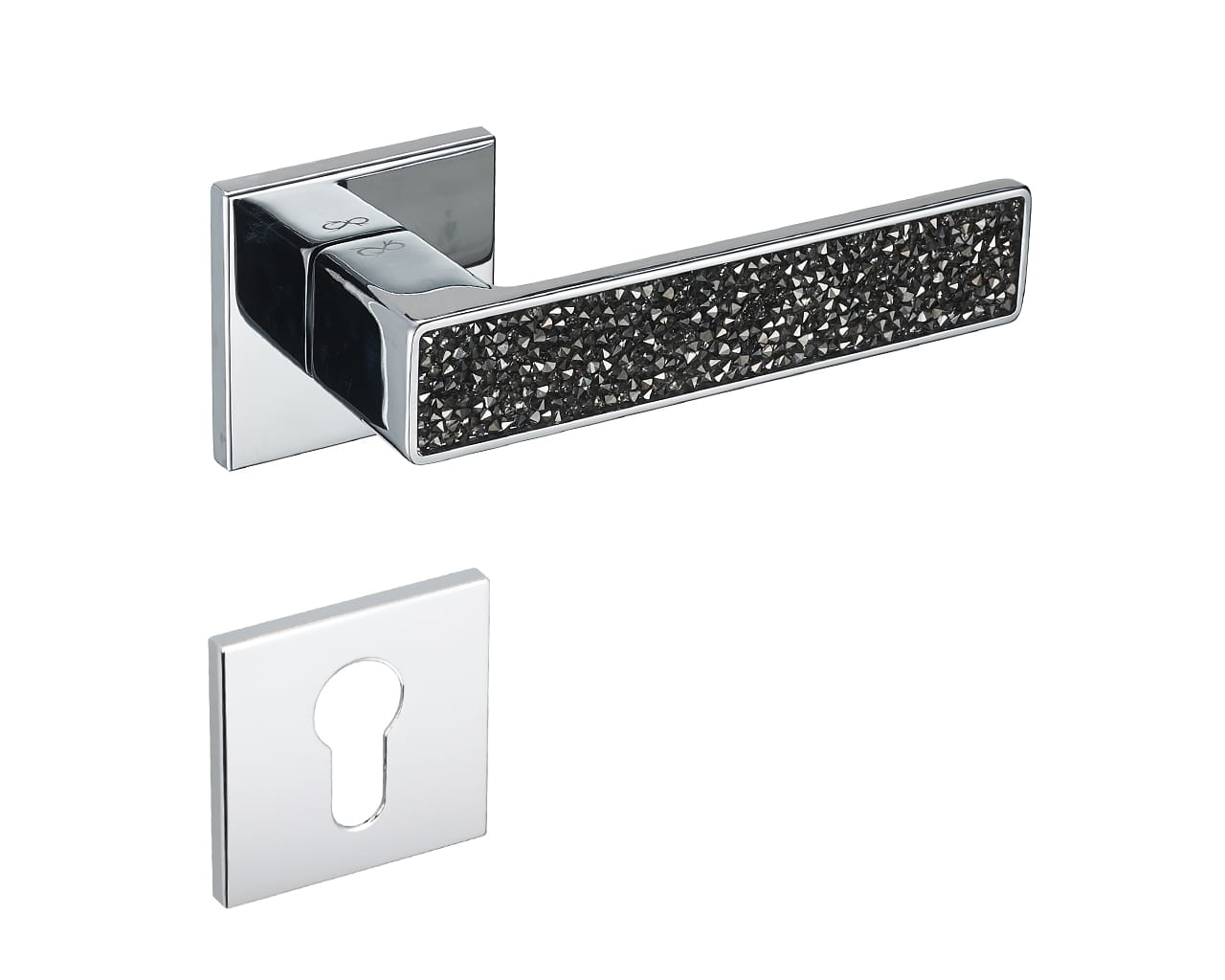 Klamka wykonana z wysokiej jakości stopu metali Znal. Powłoka nakładana przy pomocy elektrolizy gwarantująca trwałość oraz odporność na czynniki zewnętrzne. Kryształki wykonane z bezpiecznego tworzywa, pięknie odbijającego światło.