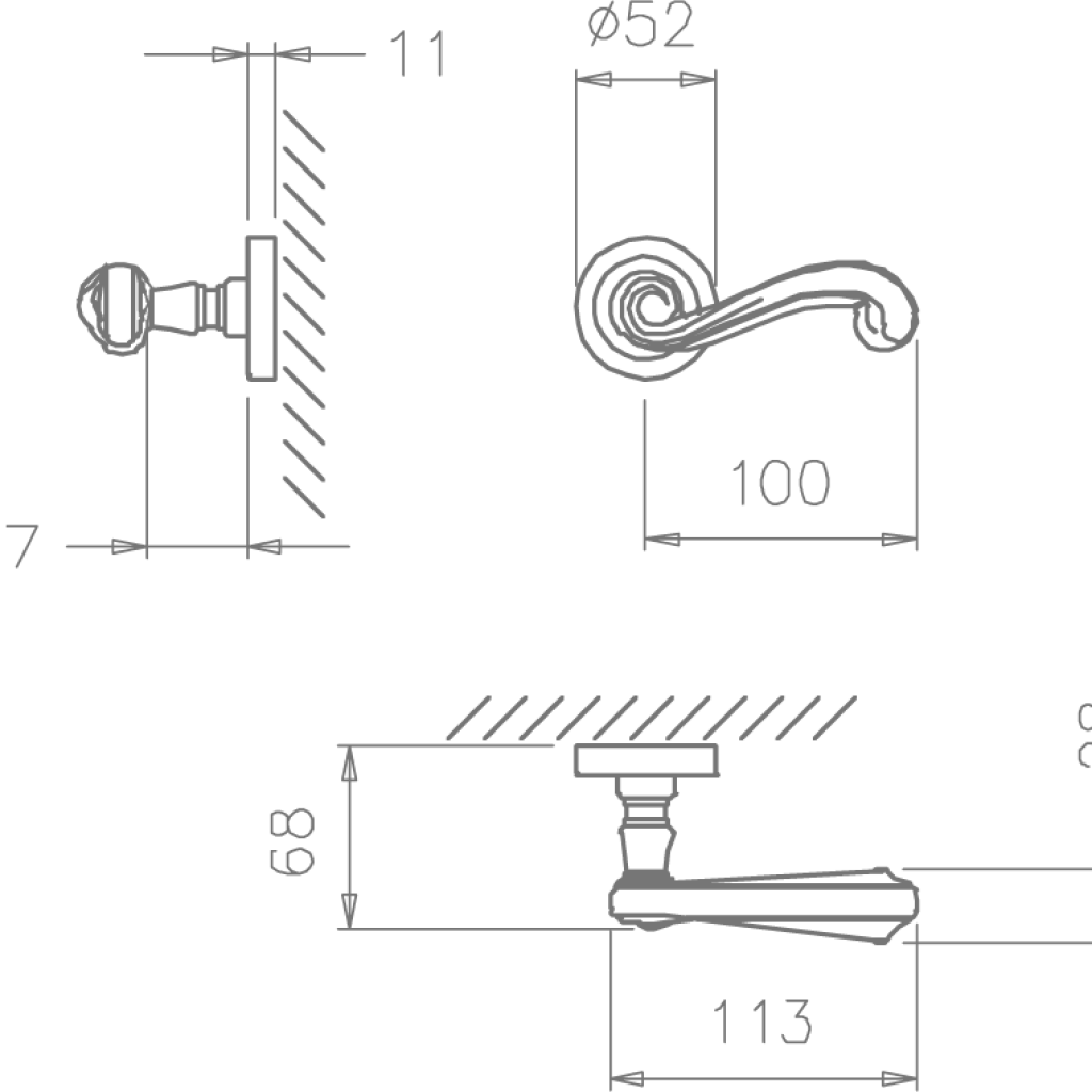 Kupują Państwo zestaw klamek na rozetach kwadratowych o grubości 11mm. Łatwy montaż na adapter wewnętrzny na tak zwany „klik”. Podwójny system sprężyn poziomujących rękojeści, zespolony z rozetą podklamkową. Kwadratowy trzpień 8×100 mm. Montaż na dwie śruby M6, niewidoczne po zamontowaniu.